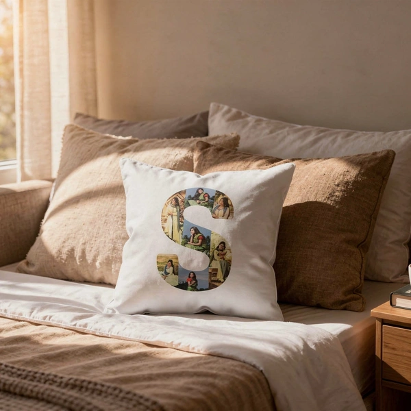 Customized Alphabet Photo Cushion | Personalized Letter Pillow with Photos